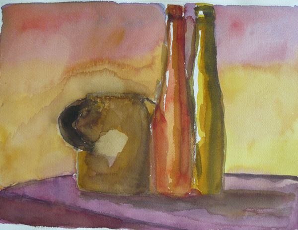 La bouteille rouge, 2003, aquarelle, brou de noix, 41x31 cm.