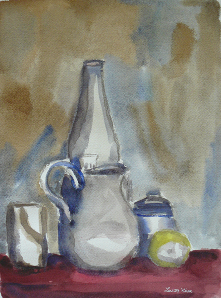 La pomme jaune, 2003, aquarelle, brou de noix, 30x40 cm.