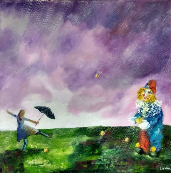 La Belle et le Clown, 2017, huile sur toile, 50 x 50 cm